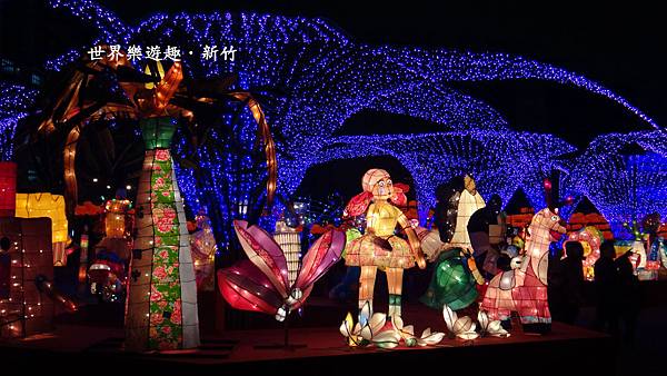 祈福燈林旁是「競賽燈區」,來自各地的花燈競賽作品 在藍紫色的花朵燈海下競艷,顯得更加華麗耀眼,真是美呆了!