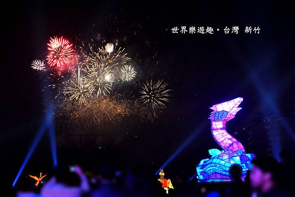 逛完「宗教祈福燈區」&「竹光產業燈區」,鑽過光明六路東二段和嘉祥五街交叉口的「迎春門」,直走左轉穿過「晶采門」就進入主燈區了,走,一起去欣賞主燈秀加煙火秀~