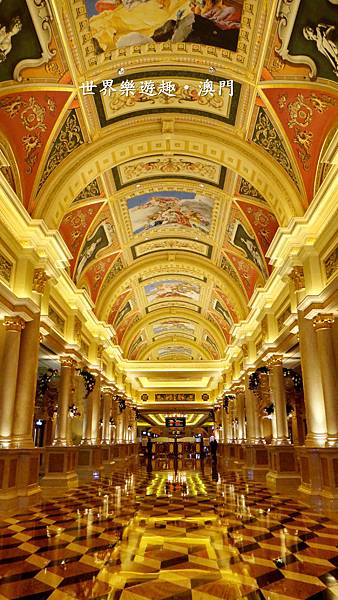 金碧輝煌的拱型長廊從大堂直通賭場遊樂區,綴飾著許多西方神話的壁畫~