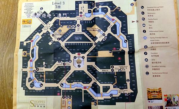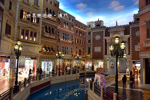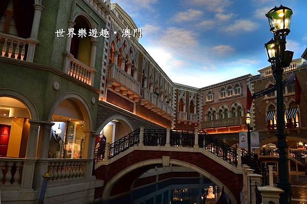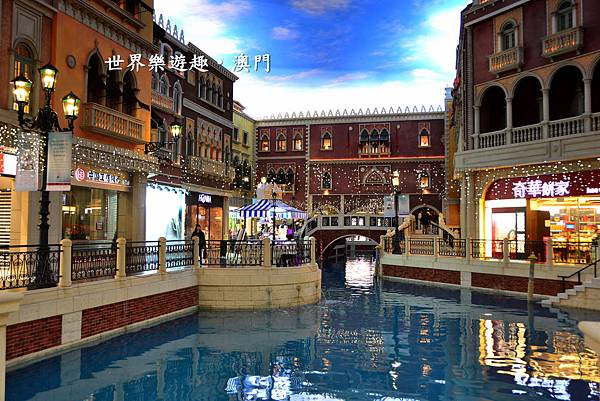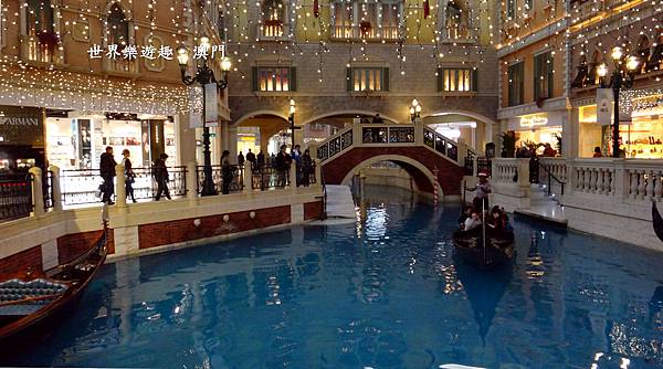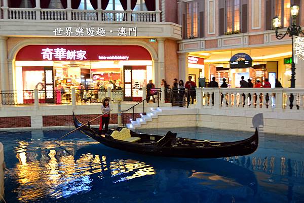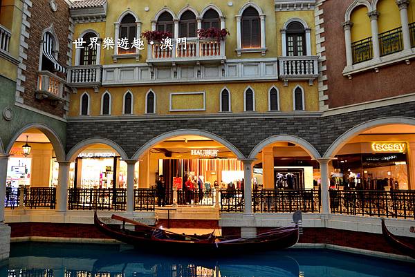 Venetian Resort Hotel的建築概念源於拉斯維加斯威尼斯人度假村,3樓的購物廣場設計更是將「威尼斯水鄉」這個主題發揮的淋力盡致~在環型商場密密麻麻的美食、商店街中共開鑿了3條室內運河,分別是大運河、聖路卡運河及馬可孛羅運河。