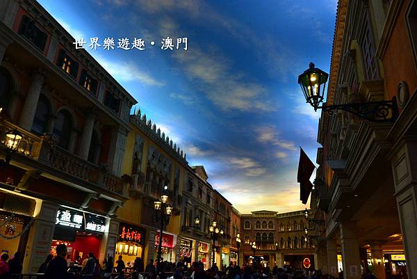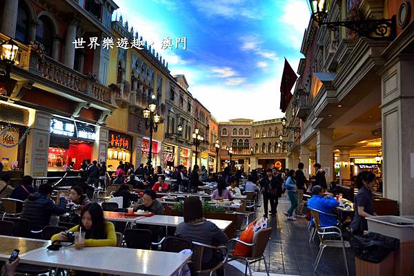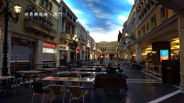 購物廣場的美食街離酒店房客住宿的南、北翼套房電梯口很近,義大利fu的街道依然是有雲彩變化的人造天空。