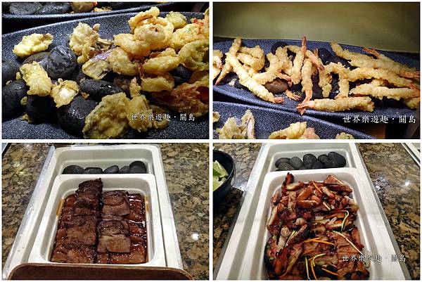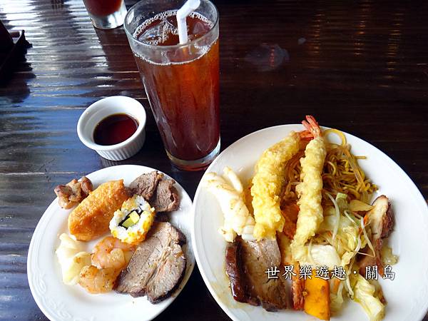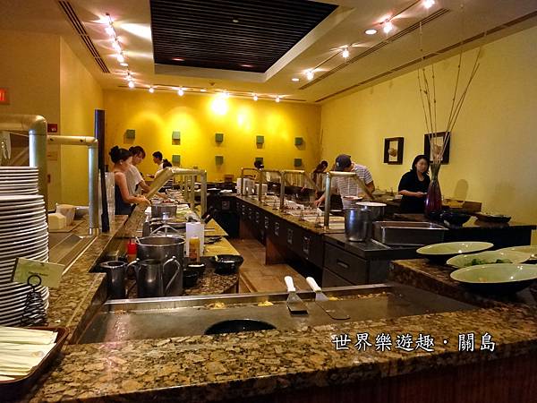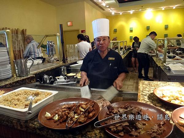 六天四夜的關島假期裡,扣除前後兩天的機上時間,奧特瑞格飯店提供了四天的早餐和第五天的午餐,都是採自助式的。午餐算豐盛,可愛的廚師愈是人多,愈是愛甩秀他的鍋鏟花招〜