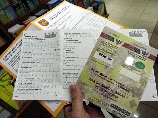印尼是落地簽,通關時要準備好落地簽卡、出境卡和海關單~