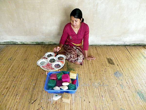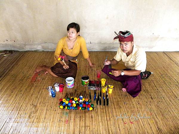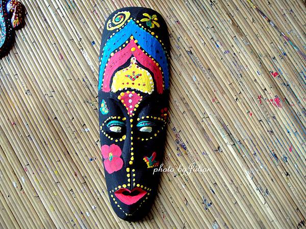 看了看它,立刻將水彩筆沾上有限的顏料,或塗、或擦、或點的完成我的作品〜當然是顏色鮮艷充滿異國風味的面具囉!這是我在峇里島體驗當地文化帶回台灣的紀念品〜