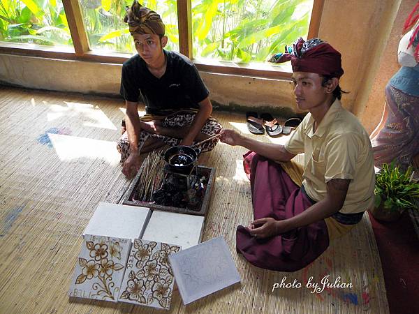 學習蠟染是很特別的DIY課程〜挑選一塊小畫布,用鉛筆勾勒出草稿,然後用蘆葦筆沾著不斷加溫熔化的蠟,一筆一筆的畫上去〜