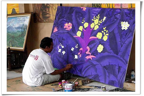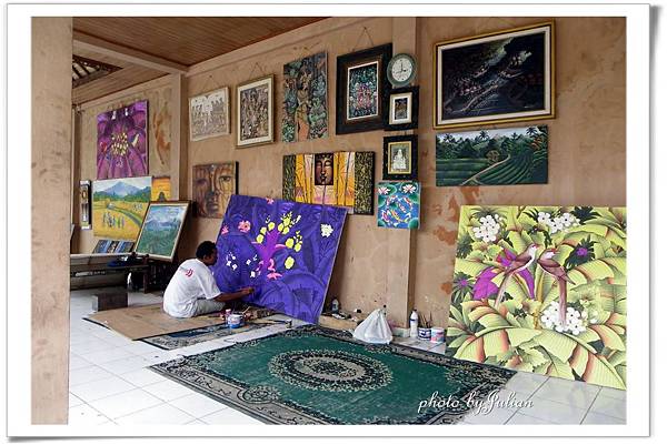 茶棚到了,魚貫下車走進院落,進門的右手邊是烏布區常見當眾揮灑的藝術家。