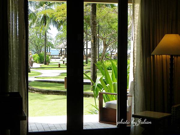 在半開放式的餐廳用餐,一方面吃著美味早餐,一方面坐擁花園綠意和欣賞海天一色的景緻,悠閒的感覺好幸福喔!