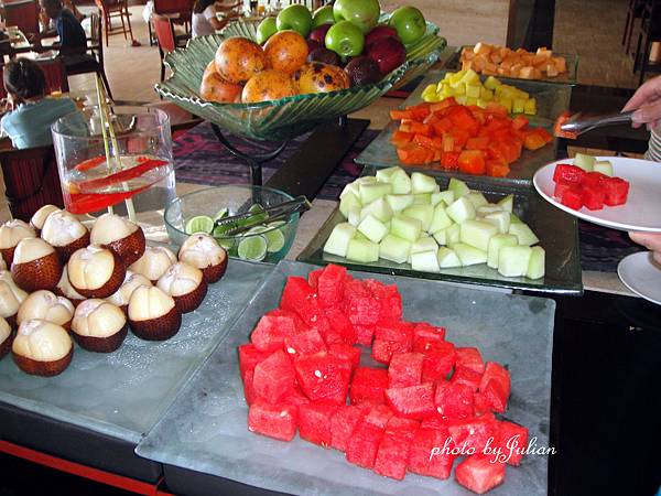 沒有Morning call的早晨睡到自然醒,早晨只有一件大事,就是到Suku餐廳吃早餐。港麗酒店的Suku餐廳,曾被澳洲人評選為2006年峇里島最佳國際性美食餐廳,從早上 7:00~晚上 23:00供應峇里島及亞洲各國的美食。