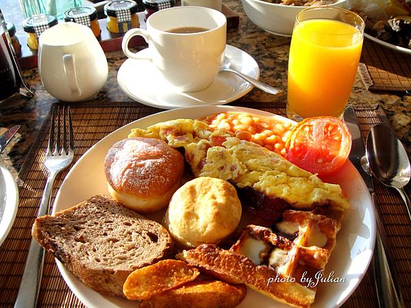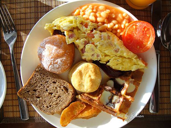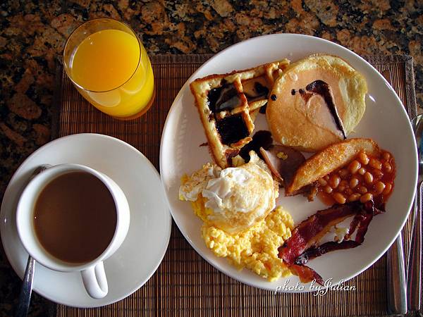 現做的鬆餅和歐姆蛋是我的最愛,吃了一盤又一盤〜