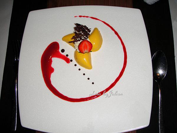 主菜是起司煎魚,還有濃湯、果汁、甜點…,只是吃到後來〜吃什麼對我來說變得不重要了…