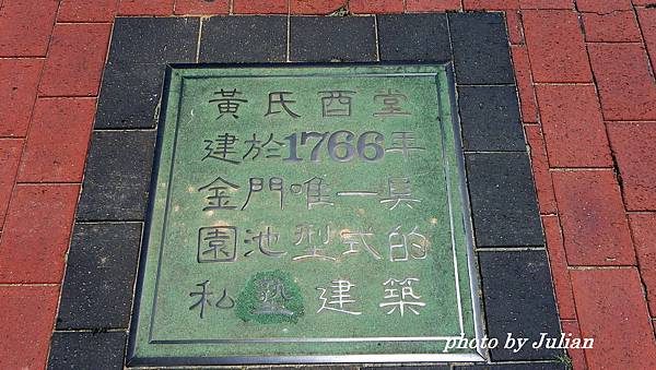 水頭「酉堂」是金門「船王」黃俊於清乾隆31年所建,是金門地區唯一具有園林池沼的建築。