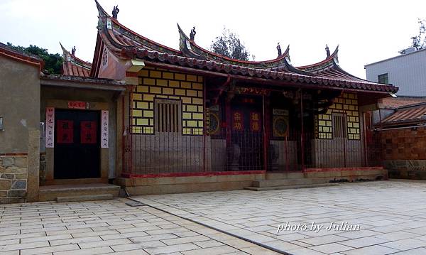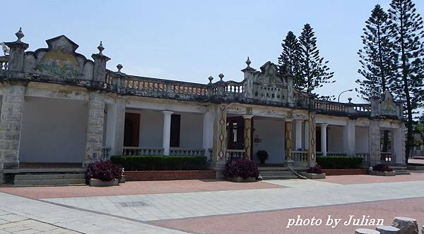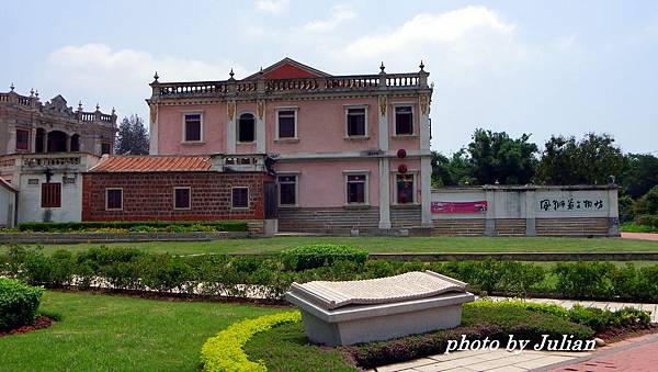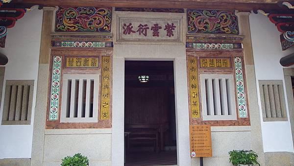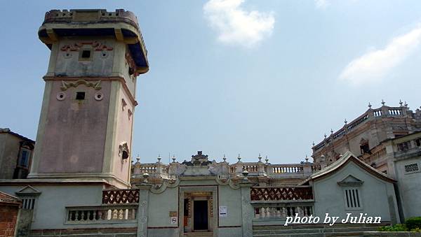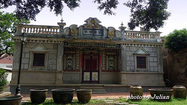 這棟建築最引人注目的是刻於正門上之對聯~「美奐美輪卜其吉、肯堂肯構居之安」,橫批則為:「龍門舊邸、鶯谷新遷」~特殊的圓形字體,異於其他的建築物。