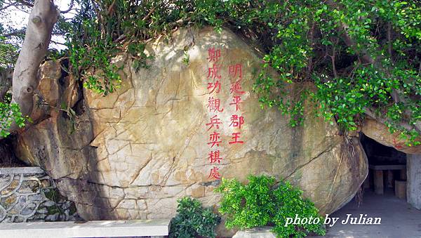 天然岩洞旁的平台可以居高望向對岸和島西的阡陌,難怪鄭成功要選在此處「觀兵奕棋」。