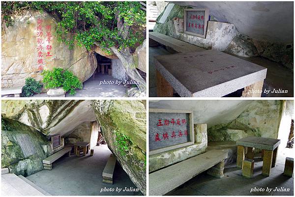 此處有一天然岩洞,導覽圖上說:此乃明末鄭成功與幕僚們戰時觀兵運籌、閒來弈棋遣興的地方。洞內原有刻上棋盤的古桌椅,但皆已傾毀,現在所見(石桌椅)是後來國軍重新修砌的。
