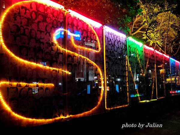 城市光廊裡有面牆長十八公尺,稱為「SMILE - 2001希望之牆」,張貼了2001位老老少少市民的笑臉,夜晚在燈光的映照下…是否是藝術品?見仁見智,至少它想要表達的意義還不錯~希望市民每天多一點微笑,以微笑迎接新一天的來臨。