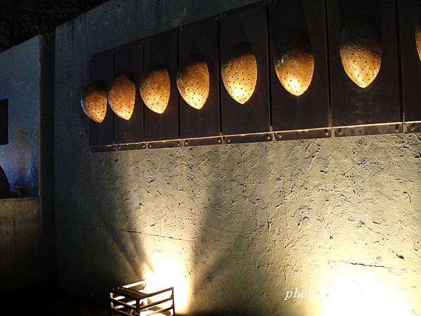 徒步空間裡還有一面光牆,雕塑作品在夜晚透過「光」的照射,顯示出藝術作品的創意。