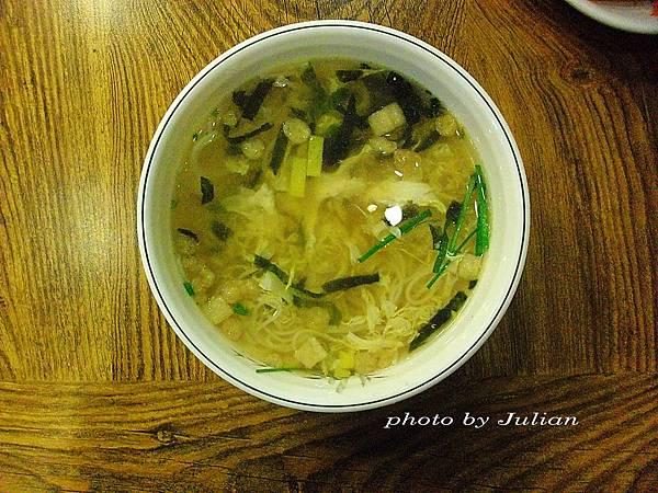 首先上桌的是湯麵線~清清淡淡的紫菜湯頭加麵線。