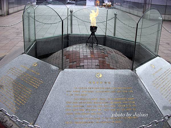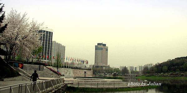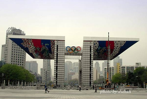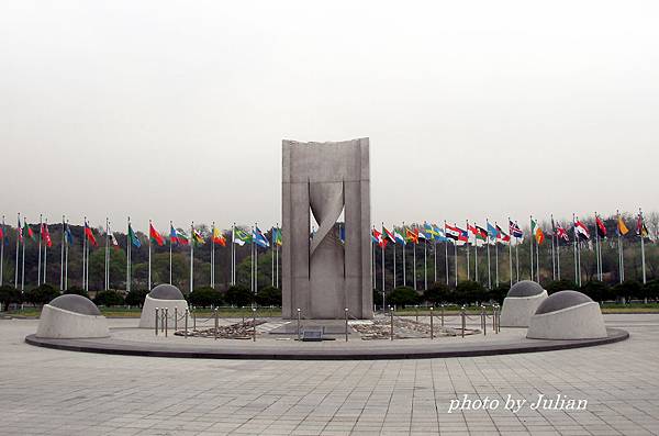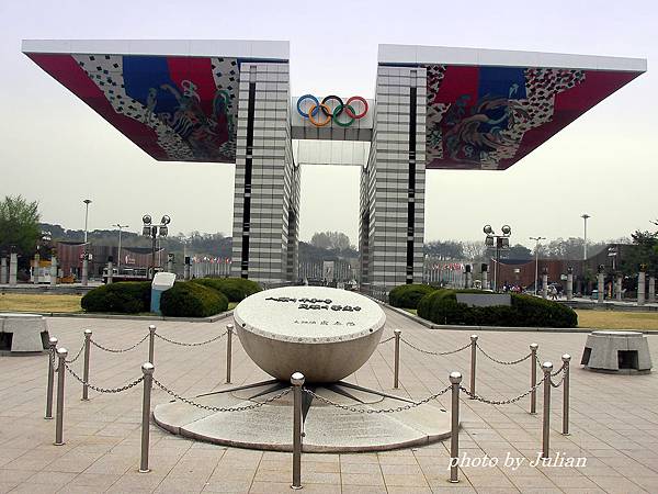 這「世界和平之門」,可是到此一遊的必拍景點。這座鋼筋混凝土的世界和平之門,建築強調飛躍與升騰的意義,最大高度24m,寬度(前後)37m,全長62m(翼正面寬度),畫家在雙翼下以韓國傳統丹青為主調,畫了四神圖…青龍、白虎、玄武和朱雀。