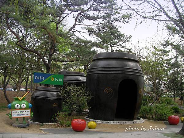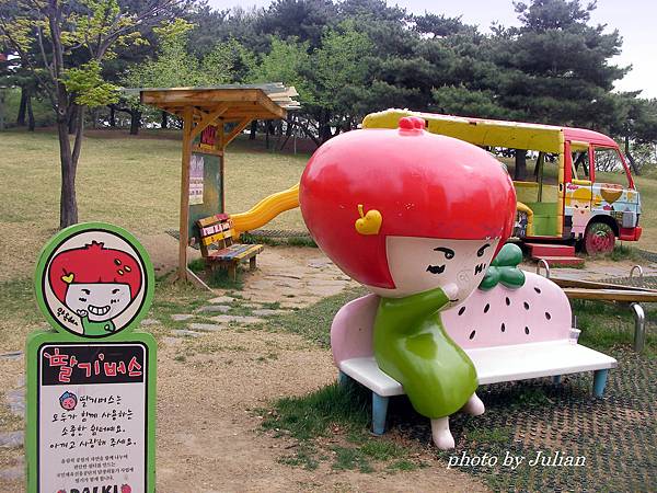 最後別忘了和公園馬路旁Q版的泡菜甕、超夯的草莓妹合影留念。