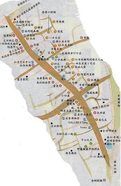 一般仁寺洞指的是從安國洞環島經過仁寺洞十字路口,到鍾路2街塔穀公園前面的一帶。以中央大街爲中心,兩側分佈著許多巷弄,巷弄裡有畫廊、傳統工藝店、美術店,還有一起豐富仁寺洞街道景觀的傳統茶館和飲食店。