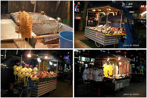 在仁寺洞的路邊還有一攤攤的攤車,銷售的商品吃的、喝的、用的什麼都有,導遊說這是合法的路邊攤。