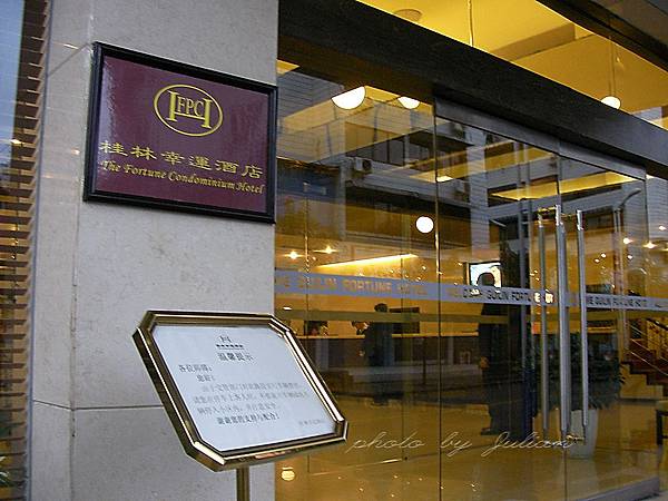 桂林幸運酒店號稱是桂林唯一具有國際五星級標準的酒店公寓。原來這兒原本是一住宅區,由日商買下大半房舍,針對日本旅客經營住宿、商務、會議、休閒度假的旅店,不過最近日本旅客大減,幾乎是台灣旅客佔了絕大部分。