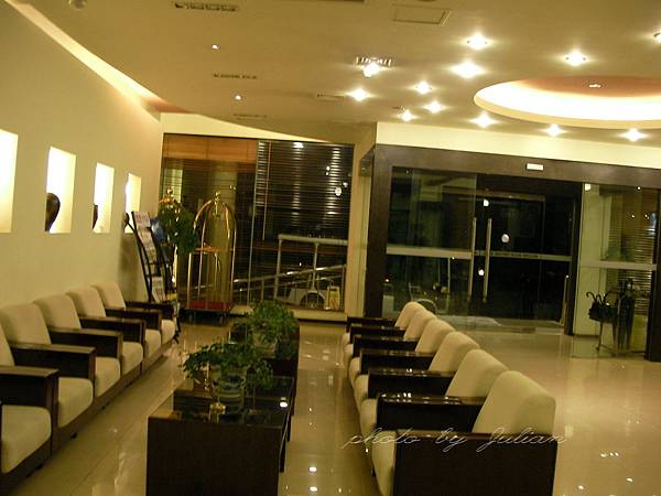 這是飯店大堂,由日本設計師精心設計,展現儉約的時尚風格。