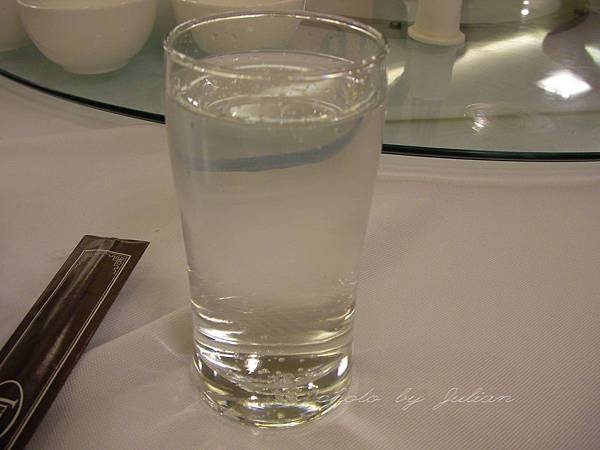 抵達酒店時已晚上10點多,地陪和導遊帶著大家直上2F餐廳吃宵夜,九菜一湯外加水果的合菜…,以下照片沒擺飯菜照片,卻擺上一杯…??這杯飲料可是飯店招待的耶!汽水、可樂、啤酒招待每人只能三擇一杯,就有團員很可愛,故意倒到表面張力滿…嘻嘻!
