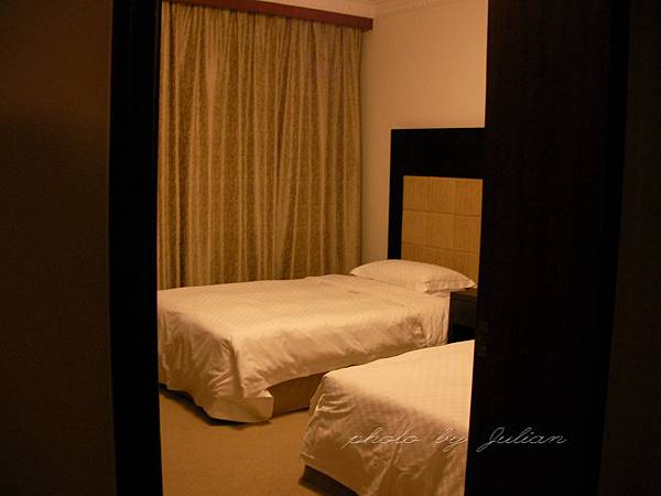 一間一大床的房間和一間兩小床的房間,但是只能使用其中一間房(都使用是會算四人房錢的)。