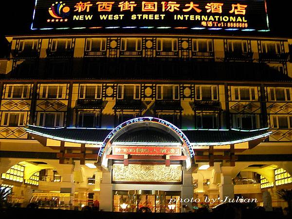 離開大圩古鎮往陽朔出發,90分鐘路程抵達今明兩晚住宿的陽朔新西街國際大酒店,位在桂林陽朔縣荆鳳路。地陪說台灣的旅遊團是那兒有新開幕的酒店就往那兒住。