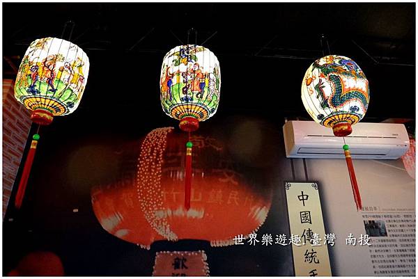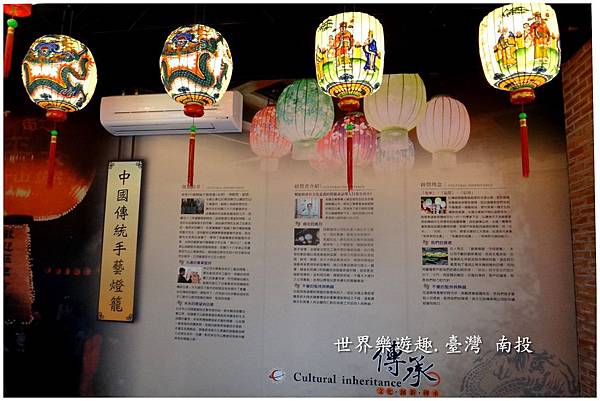 寬敞的展場裡,天花板上懸掛了一些手工製作繪製的傳統燈籠,牆面上有圖文詳細介紹燈籠的起源、歷史、種類和用法。