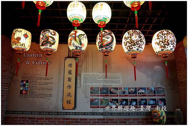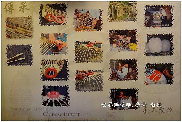 展示區的一角也明白的介紹了傘燈燈籠的製作流程,當然不是我們三兩天學得來的,但是參觀的遊客可以事先預約彩繪燈籠,DIY彩繪一個屬於自己獨一無二的布燈籠。