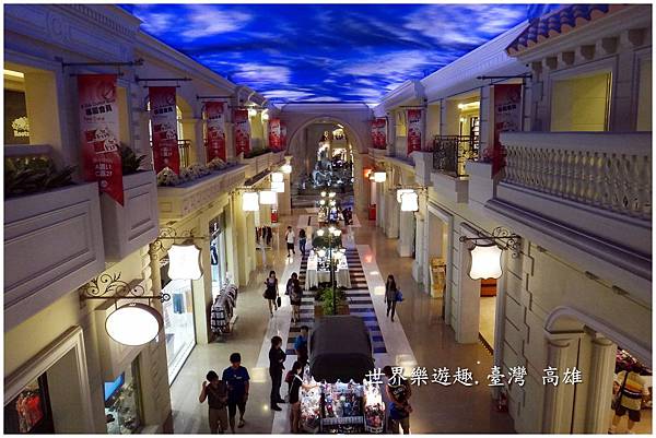 在義大世界購物廣場B區的L1層有段媲美澳門威尼斯人酒店的天幕廊道。