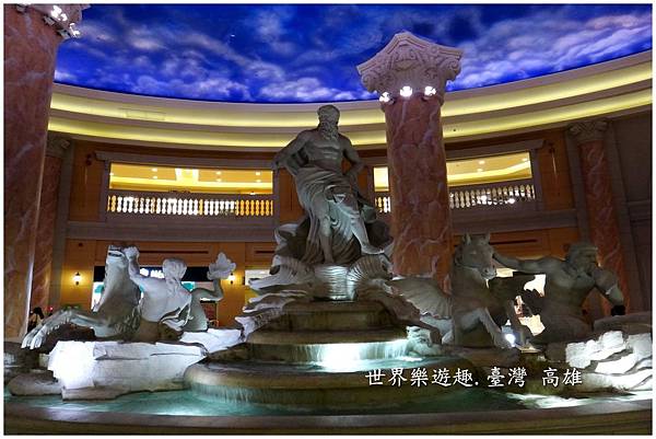 當中有座挑高天幕的羅馬式噴水池,是遊客到此一遊熱門的拍照地標,每隔1小時有音樂和燈光秀。