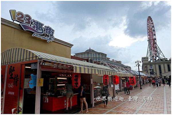 夜色來臨,回到B區123廣場,除了景觀餐廳外,還有各式的夜市美食小吃。