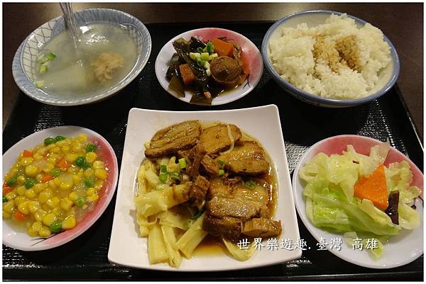 4樓的美食街有各式的美味佳餚。在義大世界第二天中午就在這兒用餐的,我選了一家古早味餐廳,點一份控肉筍乾套餐,是豬油拌飯的古早味,真是好吃!