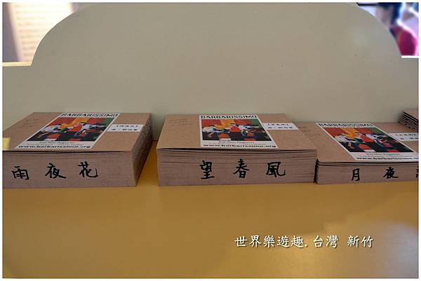 目前展場的紙卡樂譜有:《四季紅》、《月夜愁》、《雨夜花》、《望春風》、《春香吟》、《菅芒花》、《黃昏愁》、《碎心花》、《一個紅蛋》、《滿面春風》。