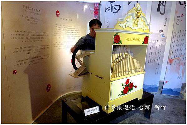 現在不用去歐洲,在影音館裡你就可以免費聆聽了〜每隔一個鐘點,展場工作人員就會轉動街頭風琴,成就一首首曲調優美的台灣歌謠。今天我好幸運,正巧遇見鄧雨賢先生的嫡孫鄧泰超老師在現場,鄧老師還親自為大家手搖街頭風琴,優美的音樂居然有兒童樂園裡旋轉木馬音樂的fu~