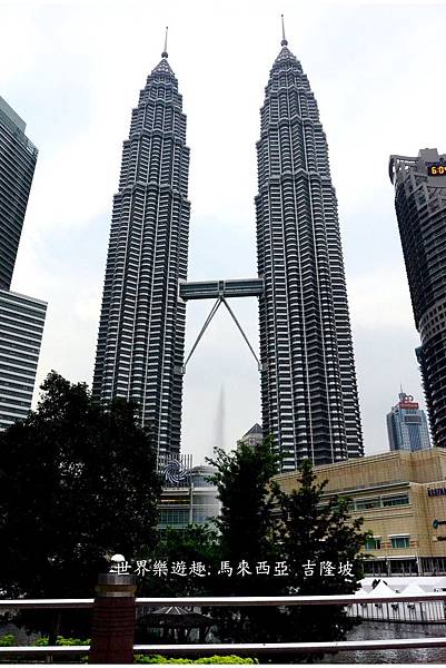 噴水池的後方有座拱橋,是大家一致推薦拍雙子星大樓很棒的拍照地點〜雖然從拱橋上看雙子星塔少了那份必須仰望的雄偉,但是多了點距離產生的美感,而且更能清楚的看個明白,可惜今天下午襯著雙子星大樓的不是藍藍的天空。