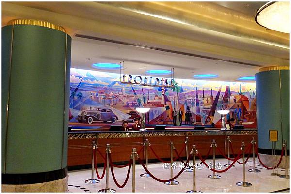 櫃台後方是一整面繽紛的好萊塢電影彩繪,非常吻合酒店名稱給住客的遐想。