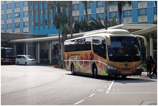 好萊塢酒店隨時有往返迪士尼樂園的免費接駁車,就在酒店大門旁等候,相當便利。