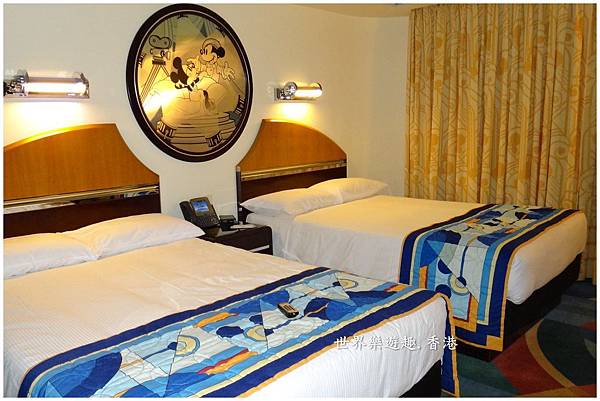 從地毯、窗簾、鏡枱、床飾帶…房內的米奇可真是隨處可見!