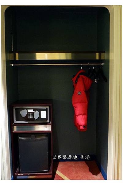 小吧台旁是衣櫃和必備的保險箱與小冰箱。