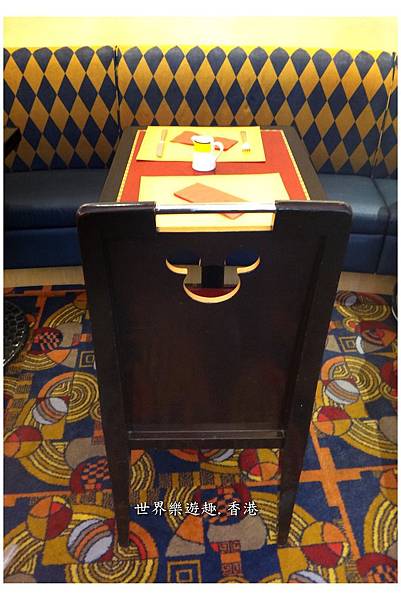好可愛的用餐環境〜從天花板、牆面塗鴉到地毯,還有鏤空的椅背…到處都有米奇的圈圈圖案!