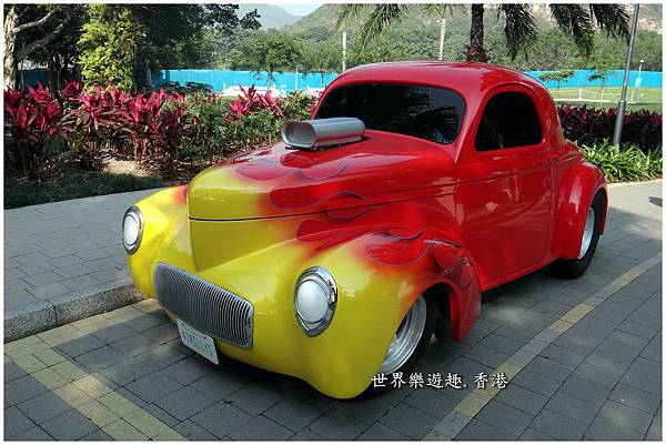 走到園區盡頭的辛迪湖旁,還有色彩艷麗的古董金龜車、超大的加長型古董車,就像好萊塢電影裡的場景一般。