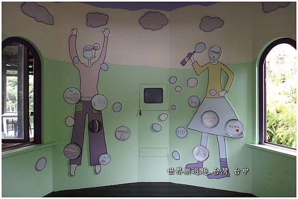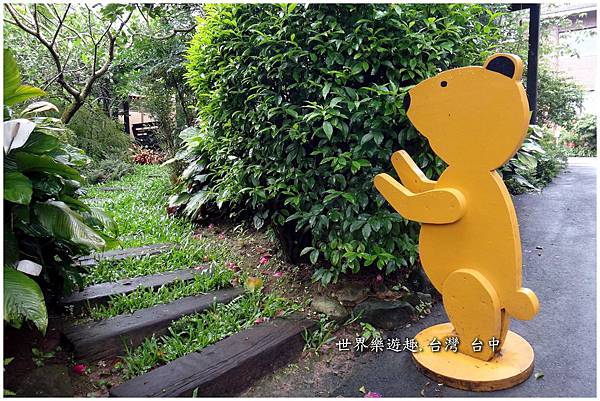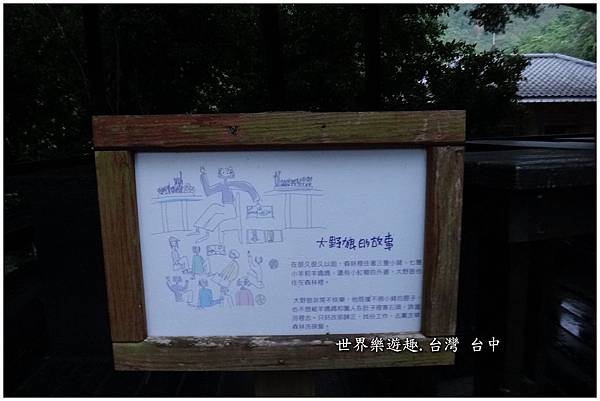 朝右邊步道直走,哈哈…大野狼改行當服務生了!這兒是說故事平台,也是體驗學習製作手工精油皂的教室。