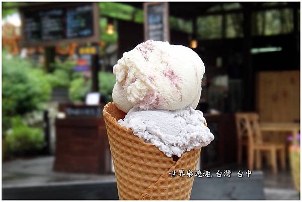 冰淇淋一球50元,2球90元,口味有好多種,最受歡迎的是薰衣草口味搭配紫莓優格口味的冰淇淋。〜坐在樹林裡聽著蟲鳴鳥叫,舔著好吃的冰淇淋,酸酸甜甜的,感覺好幸福。