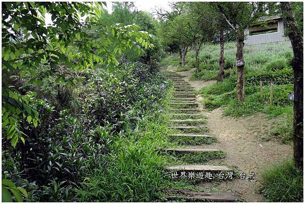 踩著薰衣草田的枕木小徑繼續往上走,許願樹就在園區的最高點~